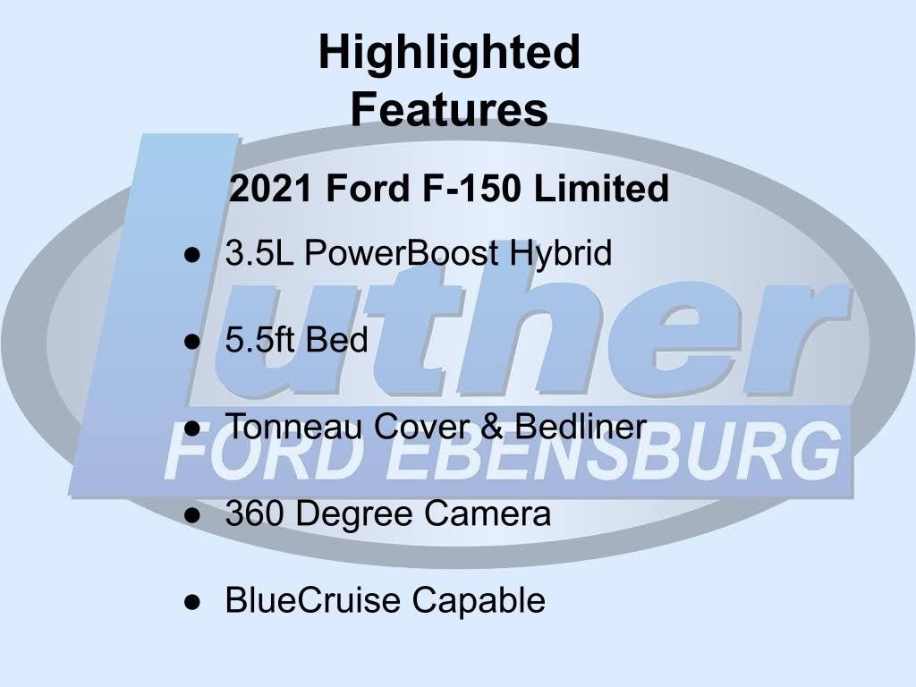 Limited -- 4x4 Crew Cab -- Thank you for choosing Luther Ford Ebensburg. This rock solid 2021 Ford F-150 has recently been added to our inventory and is currently being reconditioned by our expert team of specialists. Please feel free to reach out for any information you need.